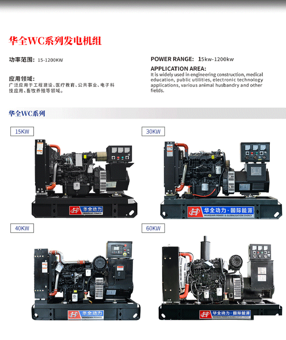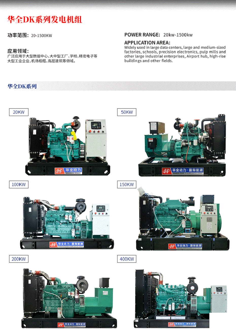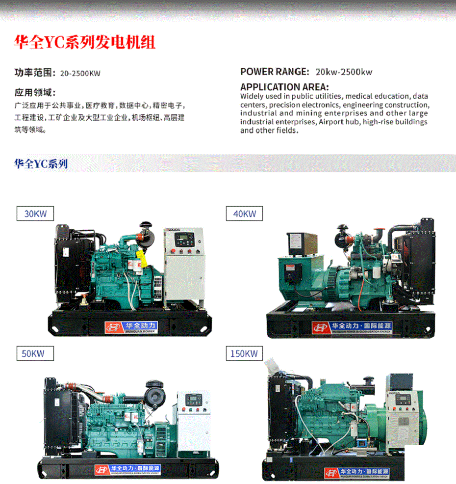 華全柴油發電機是山東華全動力股份有限公司(簡稱“華全動力”)生產的一系列發電設備,廣泛應用于工業、商業、農業、建筑、應急電源等領域。
